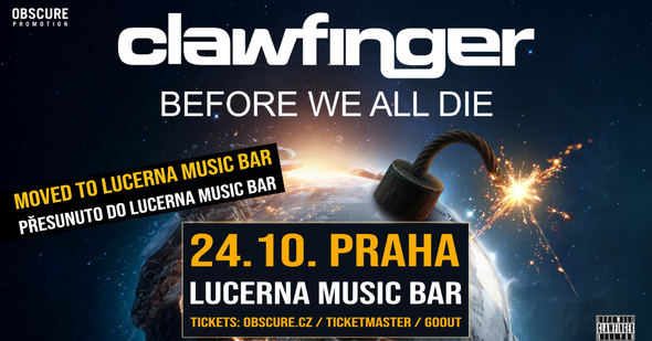 POZOR!!! PŘESUNUTO! Dovolte nám, abychom Vám oznámili, že z důvodu velkého zájmu přesouváme koncert kapely Clawfinger z Paláce Akropolis do Lucerna Music Baru. Datum koncertu zůstává stejné a vaše již zakoupené vstupenky samozřejmě zůstávají v platnosti i na novém místě konání. - OBSCURE