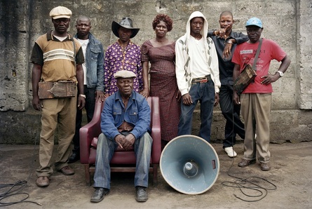 metropole Kinshasy, s drnkacími skříňkami, megafony, perkusemi
