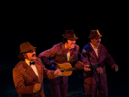 Tros Sketos spolu s Tomášem Hanákem v Paláci Akropolis. Svérázné obleky a klobouky, „sketařsko-stepařský“ zpěv, tanec a spousta absurdního humoru. To je originální trio Jaroslav Róna, Aleš Najbrt a František Skála.Seriózní pánové, kteří žijí dvojím životem. Oficiálně známí a úspěšní výtvarníci mají čas od času potřebu přímočarého exhibicionismu a vypaří se ze svých ateliérů neznámo kam, takže ani jejich nejbližší netuší, kde je hledat. V nejlepším případě v nějakém divadle, ale to není jisté, protože nemají rádi publicitu. Tros Sketos vzniklo v roce 1986 ve Skálově ateliéru za účelem vytvoření humorného programu pro jeden soukromý večírek. Ale to byl teprve začátek. Debutovali v Pražské pětce a stali se součástí divadla Sklep. Stojí za striptýzovým představením Copak já si vyperu?, uvedeném za bílého dne v období hluboké totality. Po čase přišli na to, že ke svým performancím nepotřebují žádná divadla a osamostatnili se. Do povědomí široké veřejnosti se dostali v roce 2002, kdy ztvárnili znělku 37. ročníku Mezinárodního filmového festivalu v Karlových Varech. Již z plakátu působili velmi tajemně a většina návštěvníků udiveně kroutila hlavami se slovy „Co jsou jen tihle zač?“. Jejich „pam pam“, které předcházelo každému filmu, zcela ovládlo tamní atmosféru a znělo v uších nejen festivalovým návštěvníkům, ale celému národu ještě dlouho poté. Tros Sketos se mohou do Paláce Akropolis vracet téměř jako domů, protože interiér navrhl právě F. Skála. |