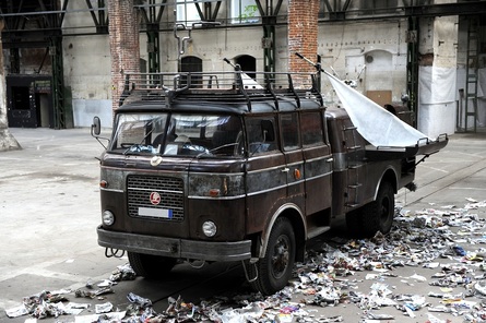 Bubenická exhibice na starém vehiklu - náměstí Jiřího z Poděbrad