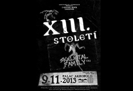 info Dvojitá gothic rocková slavnost. Mnozí z vás už si zvykli na podzimní koncerty nestorů české gotiky v našem hlavním městě, vždy společně se zajímavým zahraničním hostem. Letošní 9. listopad ale bude v mnohém jiný. Předně jsme se rozhodli uspořádat koncert XIII. století poprvé v pražském Paláci Akropolis, což je zárukou skvělého zvukového i vizuálního zážitku. Kapela zde poprvé v Praze uvede průřezový výběr Petra Štěpána „Horizont událostí“ i celkem třetí knihu frontmana nazvanou „Nový věk temnoty“. Společně s jihlavskými bardy pak vystoupí britská gothic rocková legenda Skeletal Family, která pomáhala formovat tento žánr v polovině osmdesátých let, nedávno se znovu dala dohromady téměř v kompletní sestavě a naživo je možná ještě lepší než v dobách své největší slávy. Skeletal Family dodnes patří mezi největší jména světové oldschool gotiky a v listopadu v Paláci Akropolis ke poprvé představí i v České republice. Pokud jste čekali na gothic rockovou událost roku, tady ji máte! Další informace najdete na stránkách gotického portálu