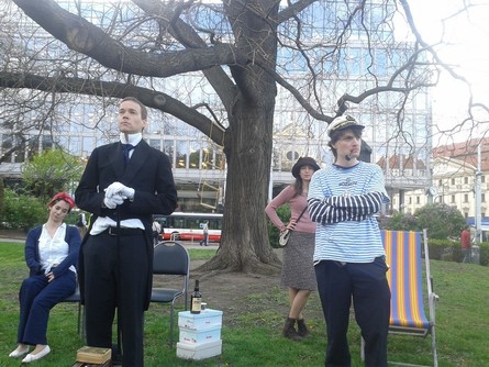 info Metaforická komedie z jedné lodi o temných krásách československého kolonialismu. Nenechme se mýlit, kolonialismus byl krásnou myšlenkou. Jen kdyby dějiny obdařily příležitostí koloniální touhu rozvinout ty správné, zaručeně nestranné a vždy tolerantní…Čechoslováky! Dokumentární veselohra vypráví o tajuplné pouti pěti dobrodruhů do útrob subsaharské Afriky. Na jedné lodi se tak roku 1920 spolu ocitne nesourodé pasažérstvo, z nějž každý si pěstuje trochu jiný tožský sen…ale i hrůzné jizvy z velké války. Co je zachrání před srdcem temnoty? Maďaři? Teritoriální tyjátr je Spolek studentů Institutu mezinárodních studií FSV UK a přátel (překrucování) soudobých dějin, jehož ústředním divadelním prostředkem je…faktografie. |