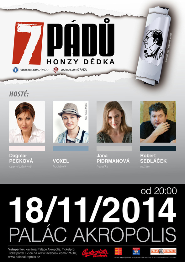 info Honza Dědek tentokrát vyzpovídá Dagmar Peckovou, Voxela, Janu Pidrmanovou a Roberta Sedláčka. Honza Dědek tentokrát vyzpovídá Dagmar Peckovou, Voxela, Janu Pidrmanovou a Roberta Sedláčka. Pořad, ve kterém si renomovaný novinář zve na pódium tři hosty z řad veřejně známých osobností i zajímavých „civilních“ profesí, měl premiéru v lednu 2011 a od té doby uvedl bezmála 50 účinkujících – za všechny jmenujme letošní hosty: Marka Ebena, performerku, tanečnici a choreografku Miřenku Čechovou, novináře J.X.Doležala a Kateřinu Kočičkovou, herce Tomáše Hanáka, Kryštofa Hádka, Michala Novotného a Jiřího Mádla, doktora Slavomila Hubálka, hudebníky Davida Kollera, Ondřeje Brzobohatého, Jakuba Prachaře, Adama Mišíka a Xindla X, Mariána Čurka, zpěvačky Ewu Farnou, Lenny, „Niki Tučkovou“ a Haidi Janků, Viral Brothers, Lukáše Pavláska či „celebritu“ Ornelu Štkovou a další. |