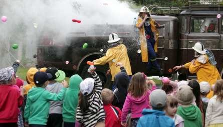 info Pouliční hasičská groteska SQADRY SUA na opravdovém hasičském speciálu v designu sochaře Lukáše Raise. TRAFFIC DANCE – BOMBEROS je rodinná pouliční hasičská groteska. Vítejte na oslavách z 120. výročí SDH (Sboru dobrovolných hasičů) Bomberos! Uvidíte ukázky z práce jedinečného hasičského sboru a snad se u toho nikdo moc nenamočí. Klaunerie, gagy, groteska a „tvrdá“ hasičská dřina při čekání na vytoužený požár. Představení BOMBEROS je součástí projektu TRAFFIC DANCE. Vice o projektu zde: https://www.facebook.com/…292034103485?… 50 minut |