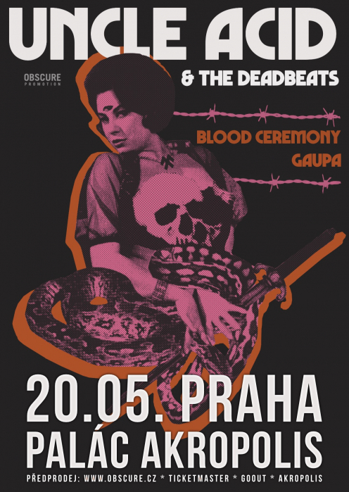 info Anglická psych-rock proto-doom čtveřice UNCLE ACID & THE DEADBEATS, která si v dubnu kolem prstu omotala pražské publikum před Ghost, se vrací do Prahy. Tentokrát však v roli hlavní kapely! Doprovodem budou podobně naladění BLOOD CEREMONY a GAUPA Tento koncert podporuje Liveurope. Liveurope je první celoevropská iniciativa podporující koncertní kluby v jejich snaze pořádat koncerty začínajících evropských umělců. Projekt Liveurope je spolufinancován programem Evropské unie Kreativní Evropa a Norským Kulturním Fondem. 17:30 – doors 18:00 – 18:40 – Gaupa 19:10 – 20:10 – Blood Ceremony 20:40 – 21:55 – Uncle Acid & the Deadbeats |
