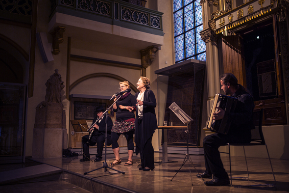 info Koncert po derniéře představení TANTEHORSE – INVISIBLE I. HANNAH. Skupina Jidiš VE TŘECH je již třetí hudební uskupení od roku 1996 se kterým zpívá Hana Frejková jidiš písně. Tento projekt vznikl v roce 2009, kdy Hana Frejková přizvala ke spolupráci klarinetistu Milana Potočka a akordeonistu Slávka Brabce. S potřebou oživeních zpěvních partů stále častěji hostuje Marianna Borecká, dcera Hany Frejkové. Skupina se věnuje interpretaci jidiš písní a snaží se o zachování této kultury v našem povědomí. Kontrast mezi smutkem a ironií spolu s melodikou vytváří ono zvláštní napětí, které dělá tyto písně tak ojedinělé. Při jejich poslechu je možno pocítit jemné kouzlo jidiš jazyka – jeho hravost, snad i šmajchlovitost, pro níž je mnohdy nepostradatelný. Skupina koncertuje jak na domácí půdě tak na zájezdech v zahraničí. https://vimeo.com/429524045 Vstup volný. |